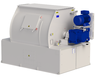 Designed for large-scale operations, it mixes up to 16,000 liters efficiently, with excellent homogeneity and hygienic properties. The low installation height and easy access for cleaning ensure maximum operational uptime. - MultiPreMix Paddle Mixer