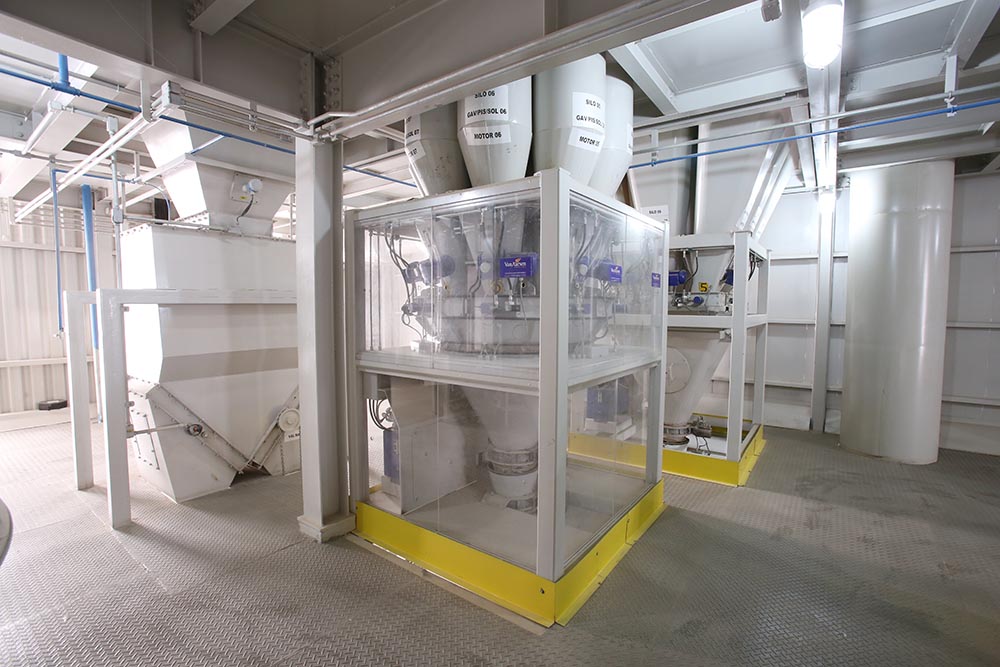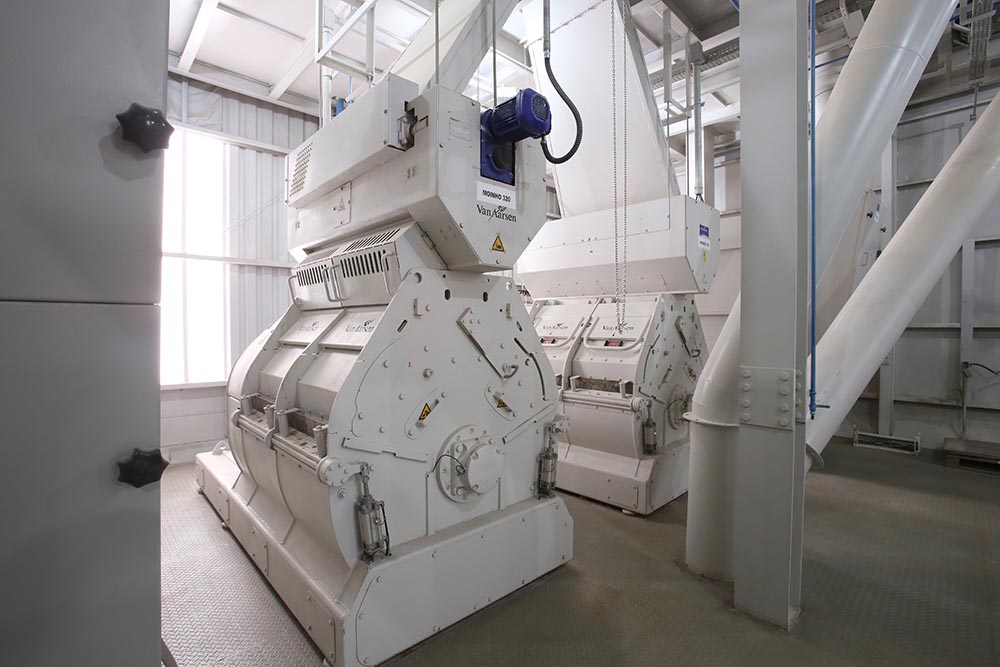 For total control of the feed mill, the Van Aarsen automation system is used. With the help of cameras installed on each floor, all machines and process steps can be observed in the control room. All sensors, motors, and valves are identified with a unique number. In case of any disturbance, the location of the item is immediately indicated in the system. To ensure optimal hygiene, the dust in all internal transport systems is continuously sucked away.